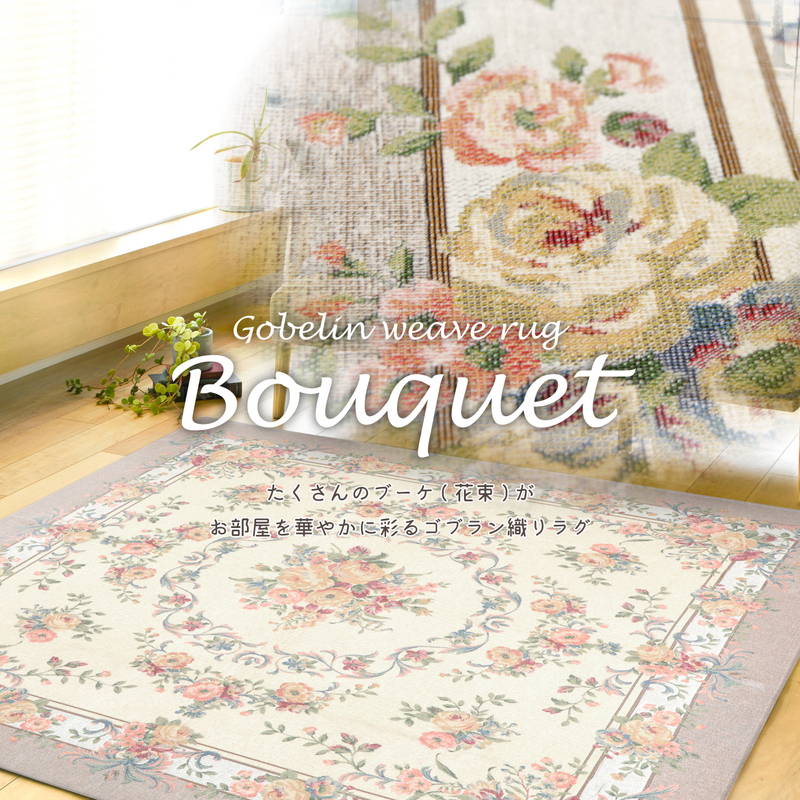 カーペット 絨毯 ラグマット ゴブランシェニールラグ ブーケ 200×250cm 洗える 撥水加工 はっ水 バラ柄 花柄 エレガント(代引不可)【送料無料】
