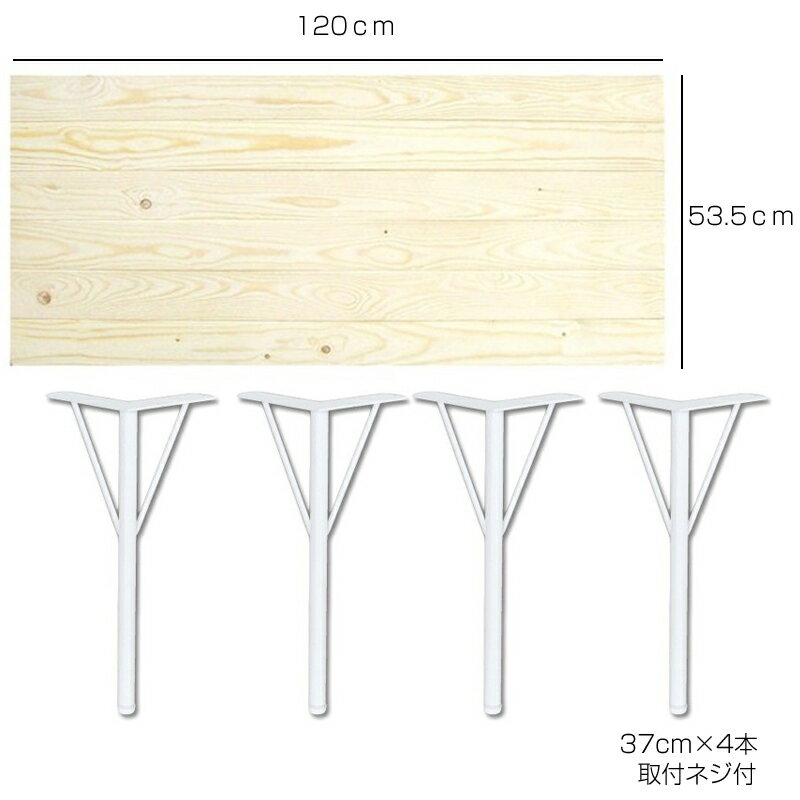 DIYテーブルセット 天板120cm 丸脚金具370mm×4本 ホワイト ・自分で作るDIYテーブルセット ・天板は無塗装。