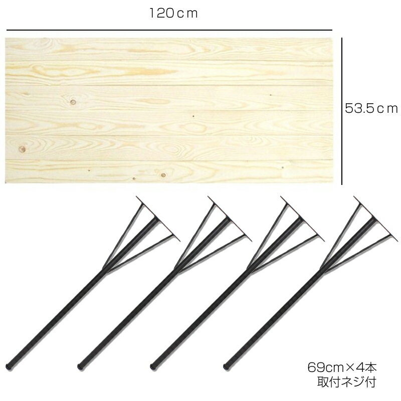 DIYテーブルセット 天板120cm 丸脚金具690mm×4本 ブラック ・自分で作るDIYテーブルセット ・天板は無塗装。